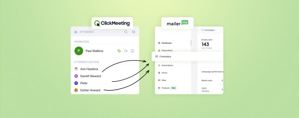 Webinars are one of the most effective ways to generate qualified leads. Email marketing is how you turn those leads into customers. The problem? Most people run them in silos — manually exporting CSVs after every event, pasting contacts into mailing lists, chasing duplicates. The ClickMeeting and MailerLite integration fixes that automatically.