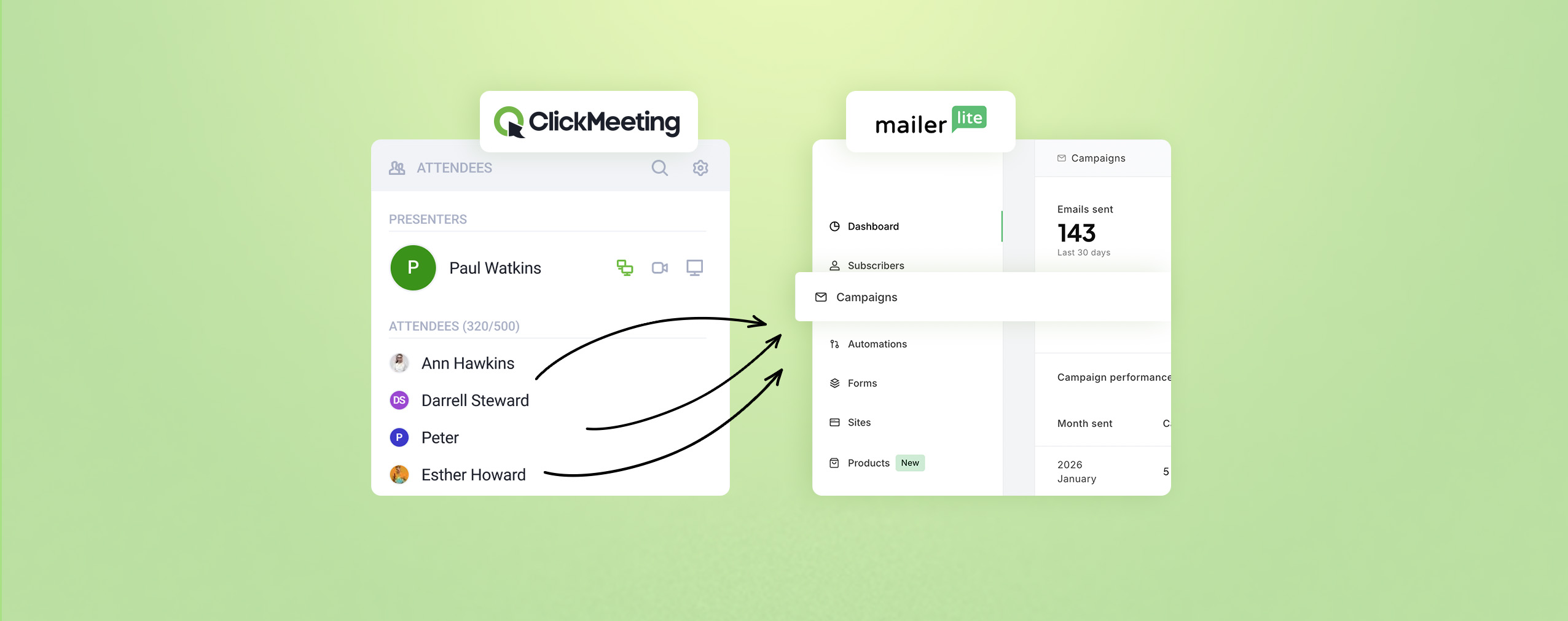 The logic is straightforward. ClickMeeting can push contacts to MailerLite. MailerLite can deliver contacts to ClickMeeting. You decide which direction (or both) makes sense for each event.