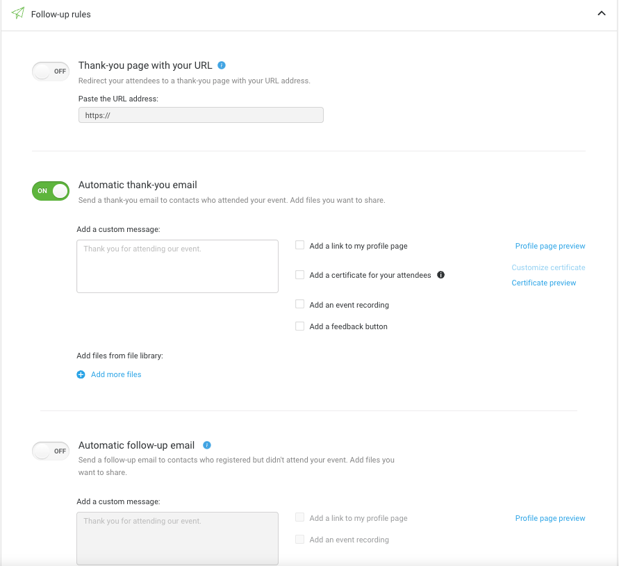 5. Automate your communications. Set up an email invitation and a sequence of reminder emails. ClickMeeting handles the delivery automatically based on the schedule you set.
