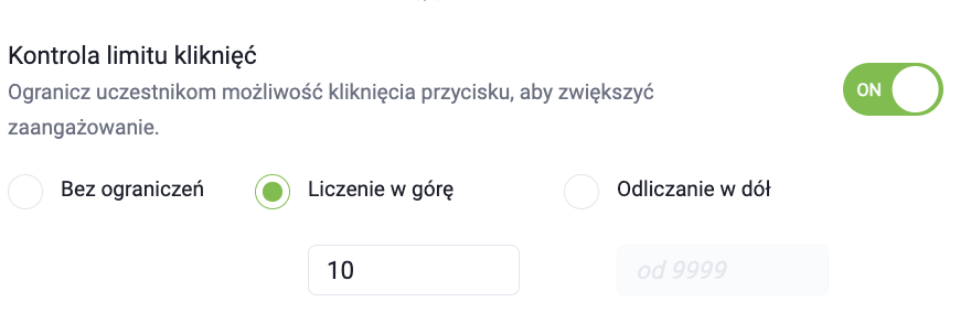 Kontrola limitu kliknięć pozwala ustawić maksymalną liczbę kliknięć w przycisk CTA. Możesz: